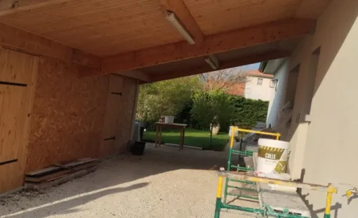 SARL LONGO Frères à Ambérieu-en-Bugey vous présente ses dernières photos.Un car port bois brut peut très vite s'abîmer, alors pour le protéger des con...